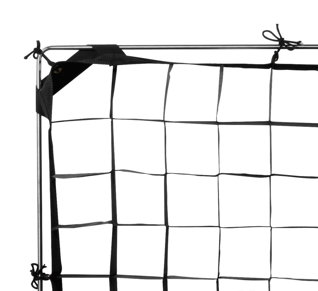 The 50° Fabric Egg Crates are frame ready, with webbing, grommets, ties along all sides, and elastic on all four corners.