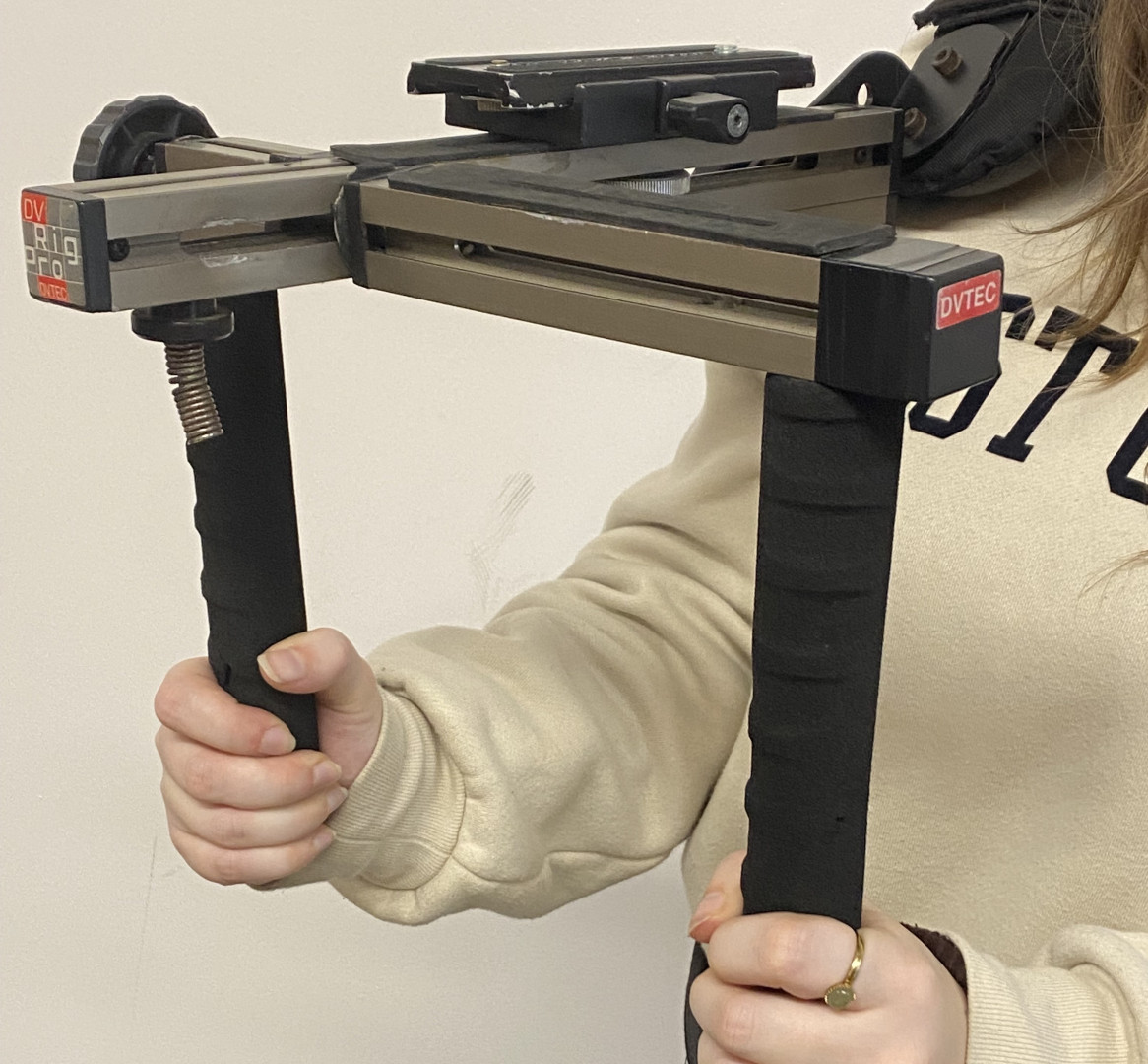 Various mounting points along rig for ¼” screws to mount video monitoring/wireless feed/small light/microphone