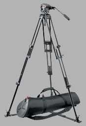 Manfrotto 525MVB DV tripod with 504 fluid head, spreader, soft case
