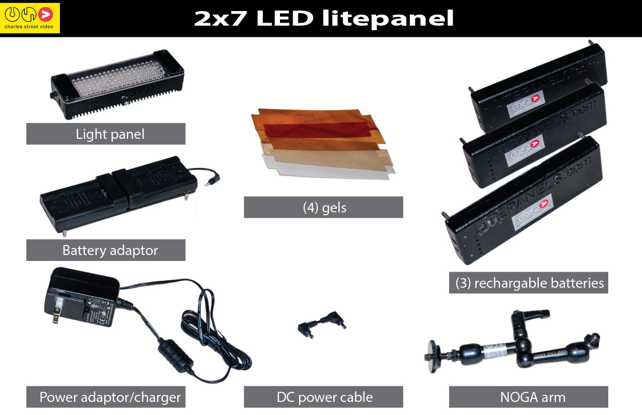 - Adaptor for Panasonic camcorder batteries (batteries not included)