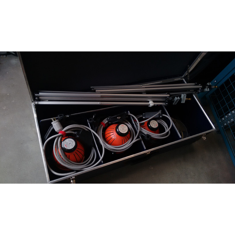 Three 1k Redhead lights with stands, in hard carrying case.