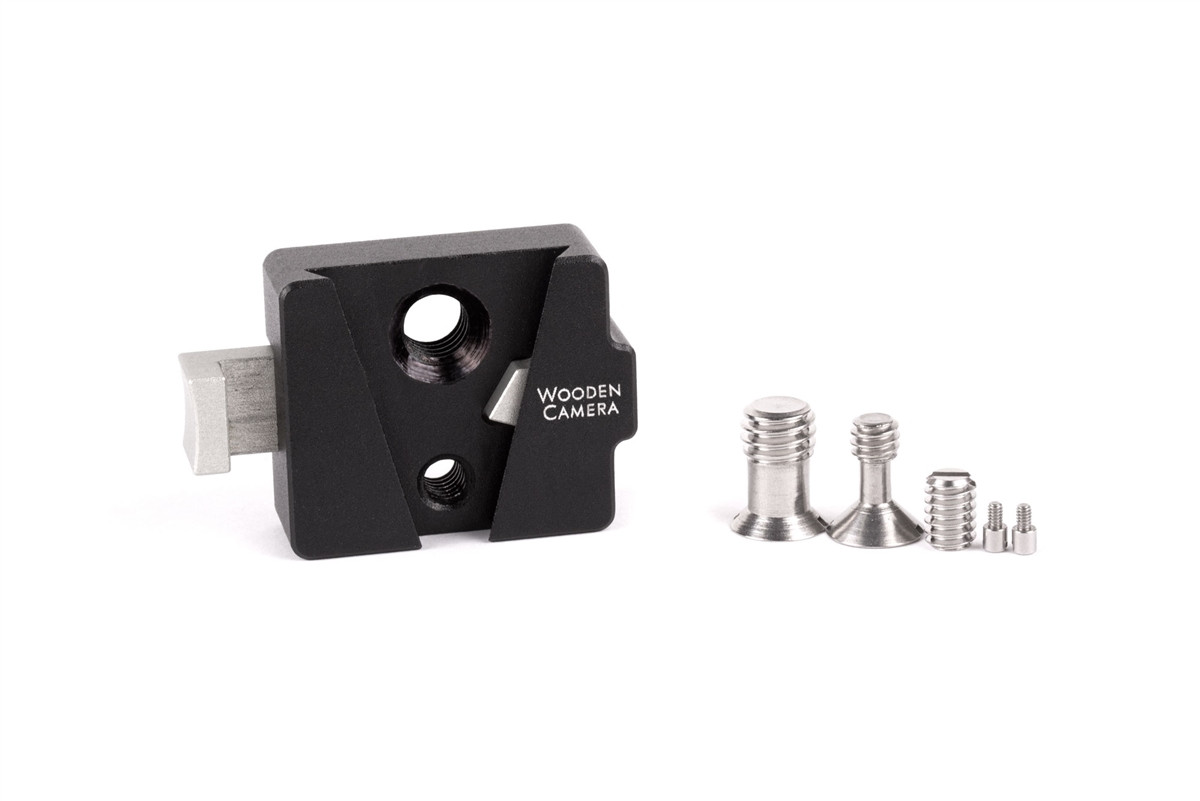 The Wooden Camera V-Lock Base Station can bolt into a 1/4-20 or 3/8-16 hole using the included screws. Set screw can also be installed to prevent twisting. Additionally the Base Station has the hole pattern for the ARRI accessory mount pins. The Base Station is also threaded for 1/4-20 and 3/8-16 so accessories can screw into it.