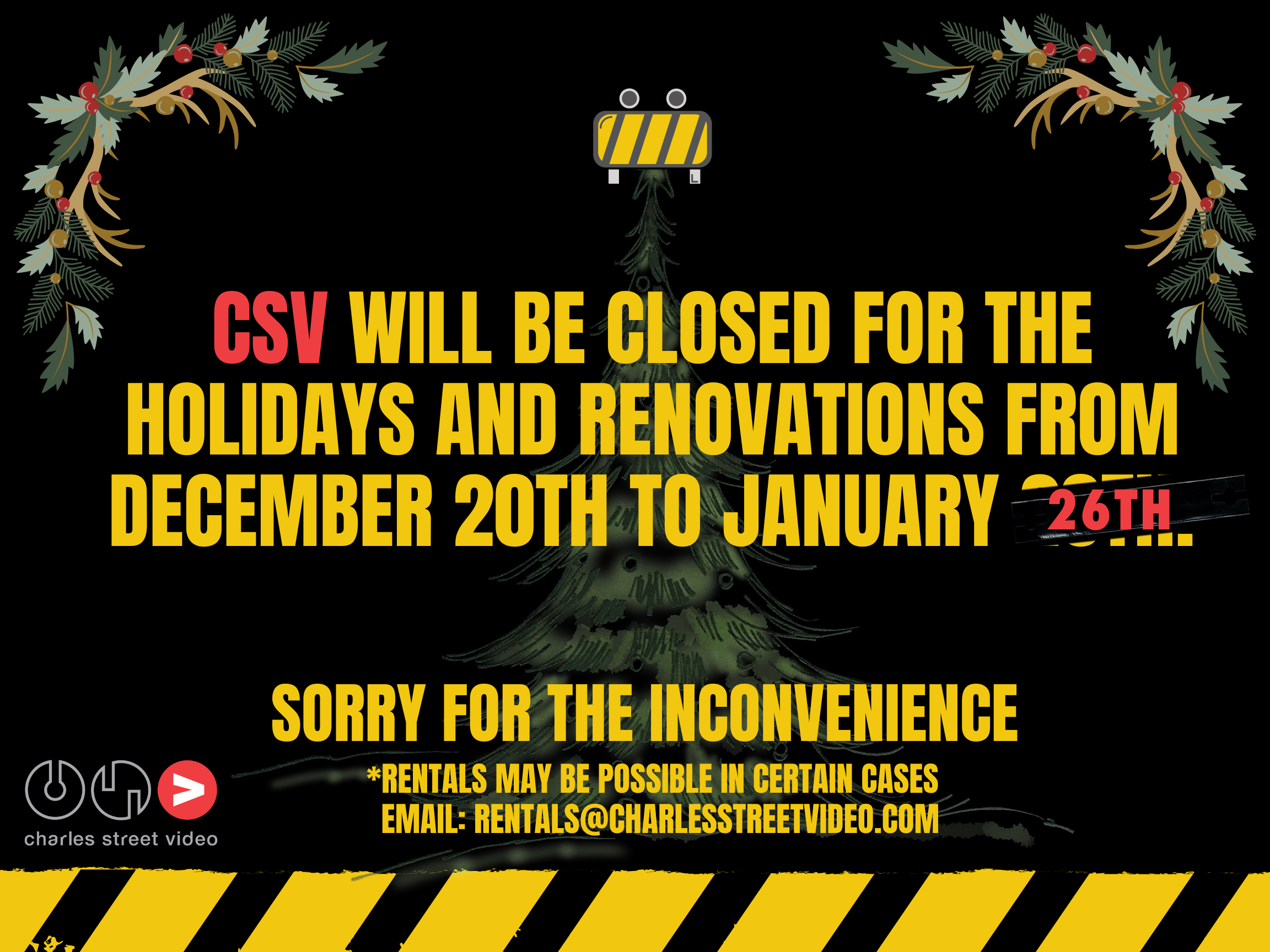 Charles Street Video (CSV) is a non-profit production organization established in 1981 to help support media artists. We provide affordable access to equipment and post-production editing facilities for creating videos, films, installations and other media art forms. We offer regular workshops, training sessions and residencies.
